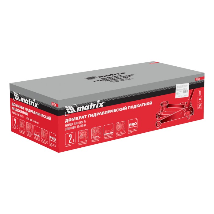 Домкрат гидравлический подкатной, 2 т, высота подъема 135-355 мм Matrix