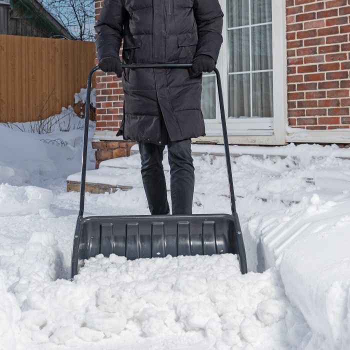 Движок для уборки снега пластиковый, 690х470х1420 мм, стальная рукоятка, Сибртех