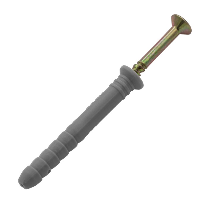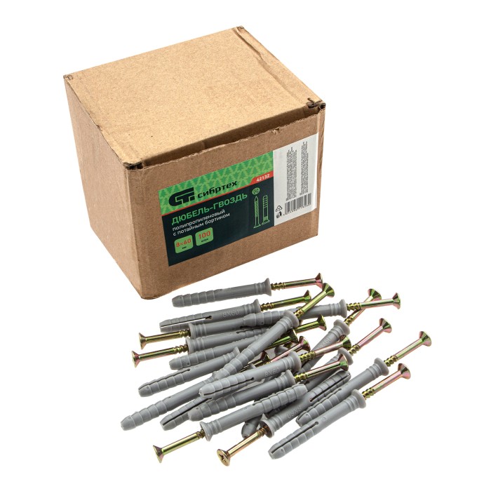 Полипропиленовый дюбель-гвоздь Сибртех 42132 с потайным бортиком, размером 8 х 60 мм, 100 шт. в упаковке, предназначен для закрепления деталей и конструкций на основаниях из бетона, кирпича или камня. Потайной бортик дюбеля обеспечивает максимальный контакт крепежа с прикрепляемым материалом. В комплект поставки входят саморезы со шляпкой типоразмера PZ2. Дюбель-гвоздь применяется при проведении строительных и ремонтных работ, прокладке сетей, а также для решения бытовых задач.ПреимуществаПростой и быстрый монтаж — дюбель забивается в основание молотком.Устойчивость к разрушению — дюбель из полипропилена не боится воздействия ультрафиолета, цинковое покрытие защищает гвоздь от образования коррозии.Надежная фиксация в толще материала — ребра на дюбеле препятствуют ослаблению крепежа.Экономичная упаковка — 100 крепежных элементов хватит надолго.