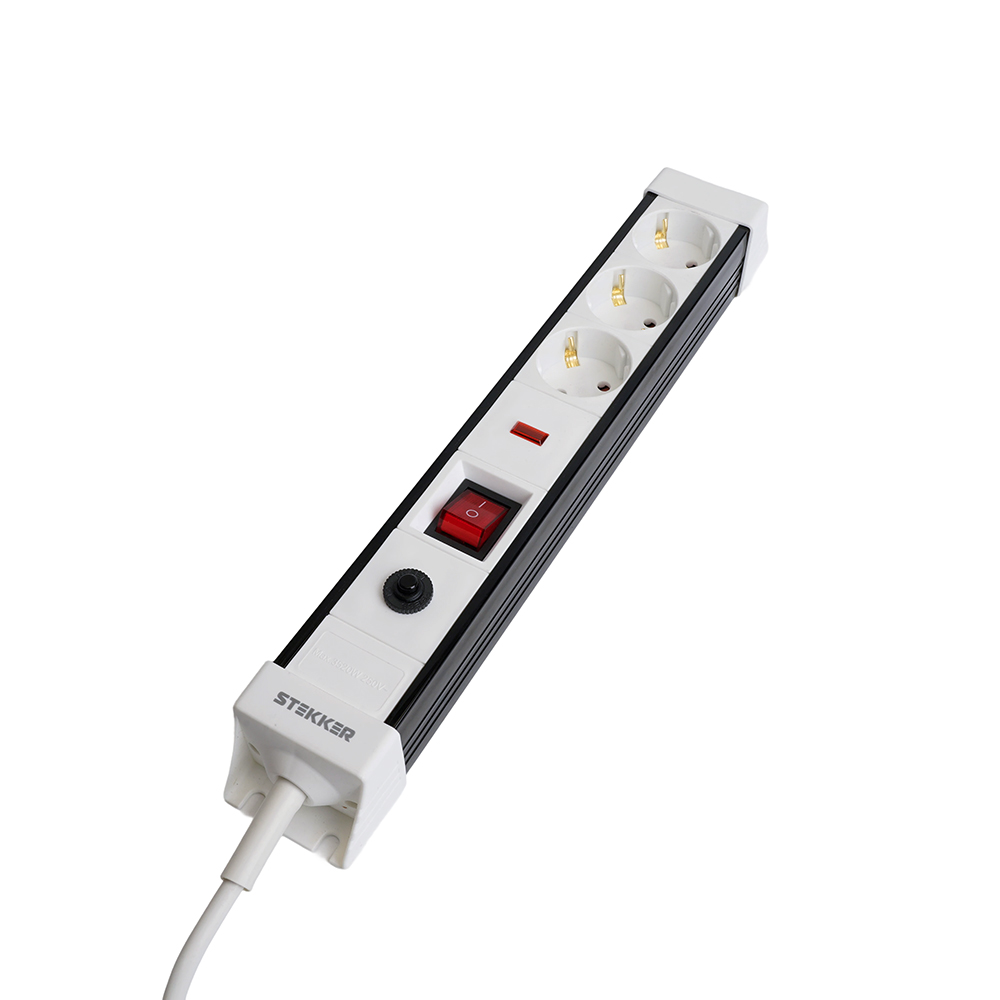 Сетевой фильтр 3-местный с/з STEKKER 3x1мм2, 3 м, 250В, 16А, серия Techno, HM22-31-03, белый 50145