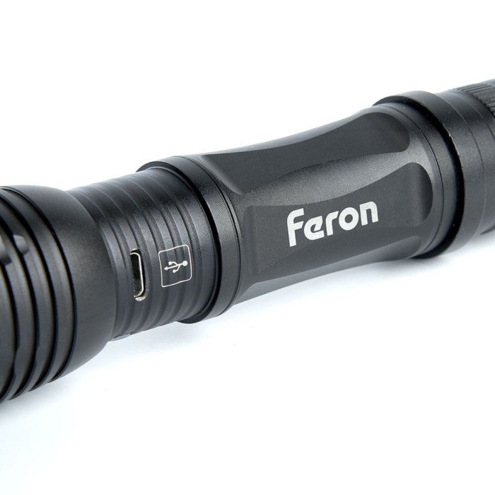 Фонарь с аккумулятором FERON TH2401 переносной , 1LED IP44, аккумулятор 3,7/2000mAh/Li-Ion (литий-ионный), количество режимов 5, время зарядки 2 часа, время работы 5 часов , цвет черный, 35*35*145мм