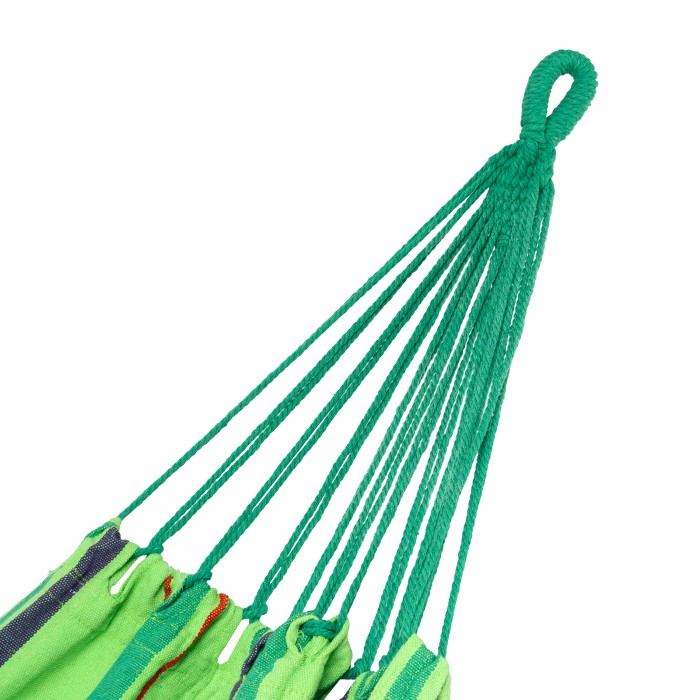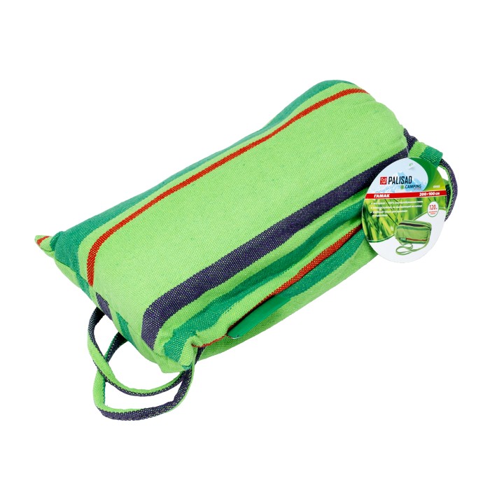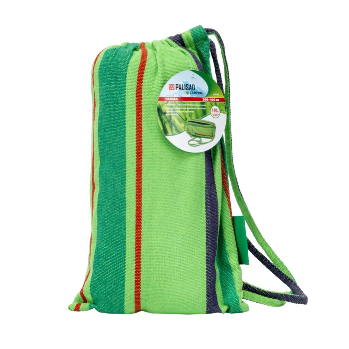 Гамак Camping Palisad 69585 размером 200 х 100 см, без планок, сделает отдых на природе комфортным. Поможет расслабиться и приятно провести время за чтением, подарит освежающий сон, а также обеспечит спокойную работу за ноутбуком на свежем воздухе.ПреимуществаЭкологичность — гамак из 100% хлопка безвреден для здоровья и позволяет телу дышать.Универсальность — длина полотна составляет 200 см, допустимая нагрузка — 120 кг, поэтому гамак подойдет практически любому пользователю.Простой уход — благодаря отсутствию планок гамак легко стирать. Удобная транспортировка — гамак поставляется в комплекте с чехлом.