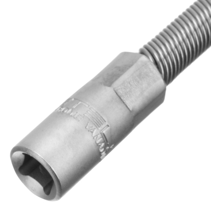 Гибкий удлинитель Stels 13909 длиной 150 мм, под квадрат 1/4", предназначен для монтажа и демонтажа резьбовых соединений. Совместим с торцевыми головками, карданными шарнирами и другими насадками. Благодаря гибкой конструкции облегчает работу с крепежом, расположенным в труднодоступных местах, в том числе под углом. Удлинитель будет полезен в слесарной мастерской, пригодится для проведения профессионального или самостоятельного ремонта автомобилей.ПреимуществаУстойчивость к деформации — удлинитель из хромованадиевой стали выдерживает высокие нагрузки.Защита от образования коррозии — на поверхность изделия нанесено матовое хромовое покрытие.Надежная фиксация — шариковый фиксатор крепко удерживает насадку.