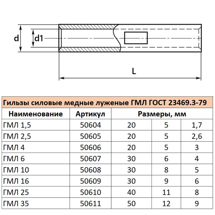 Гильза медная STEKKER; 2,5 - ; , медь марки М2, ,...