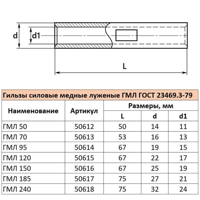 Гильза медная STEKKER; 95 - ; , медь марки М2, ,...