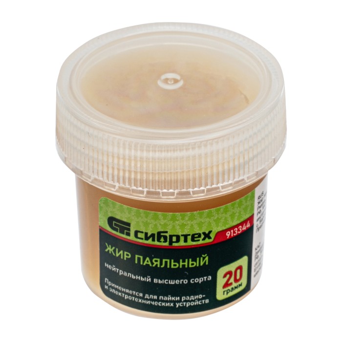 Паяльный жир Сибртех 913344, поставляющийся в банке объемом 20 г, — нейтральный флюс для пайки проводов и компонентов радиоэлектронной аппаратуры. Используется также для лужения жала паяльника. Жир эффективно удаляет оки...