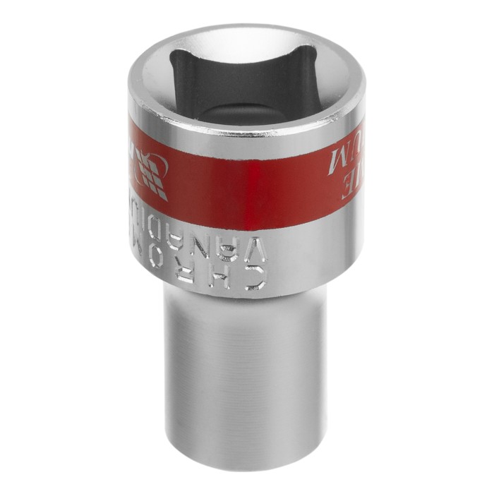 Хромированная торцевая головка Matrix 13680 из стали CrV, размером 10 мм, с 12-гранным профилем и посадочным квадратом 1/2" — оснастка для слесарного инструмента, предназначенная для монтажа и демонтажа резьбовых соединений. 12-гранный профиль обеспечивает максимальный контакт с гранями головки крепежа, что уменьшает ее деформацию при высоких нагрузках. Угол поворота составляет 30°, что облегчает работу в труднодоступных местах. Насадка пригодится для проведения монтажных и ремонтных работ дома, на даче или в гараже.ПреимуществаПрочность — торцевая головка выполнена из высококачественной хромованадиевой стали, твердость рабочей части составляет 42 HRC.Защита от разрушения — полированное хромоникелевое покрытие предотвращает образование коррозии.Быстрый поиск среди других насадок — торцевая головка маркирована красной полосой, на корпусе указан типоразмер.
