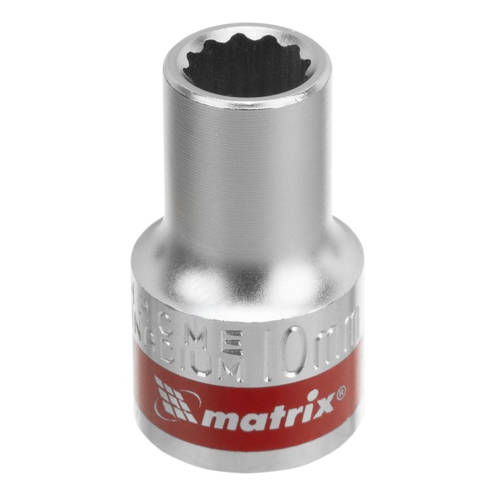 Головка торцевая, 10 мм, двенадцатигранная, CrV, под квадрат 1/2, хромированная Matrix