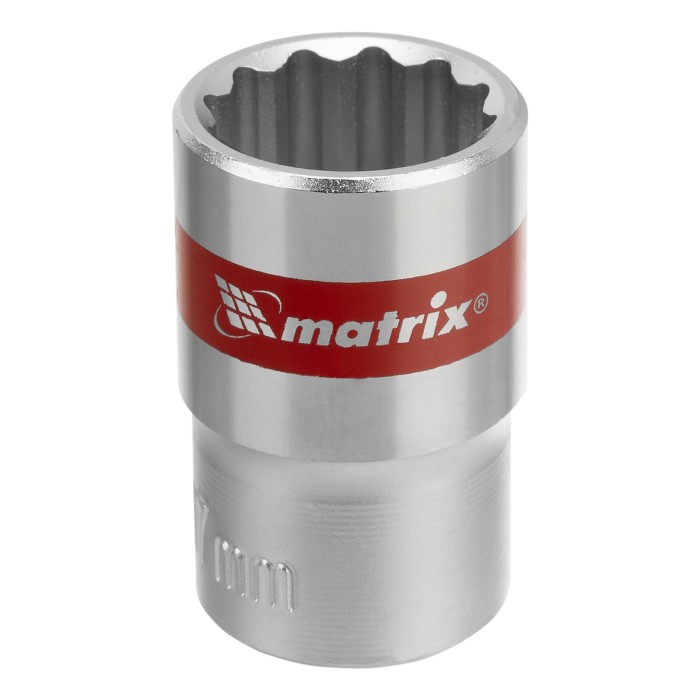 Головка торцевая, 17 мм, двенадцатигранная, CrV, под квадрат 1/2, хромированная Matrix