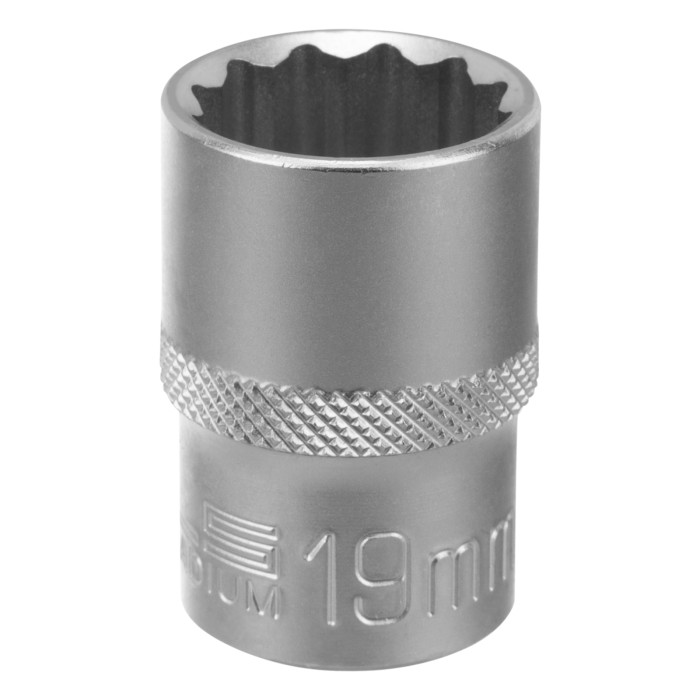 Головка торцевая, 19 мм, двенадцатигранная, CrV, под квадрат 1/2, хромированная Stels