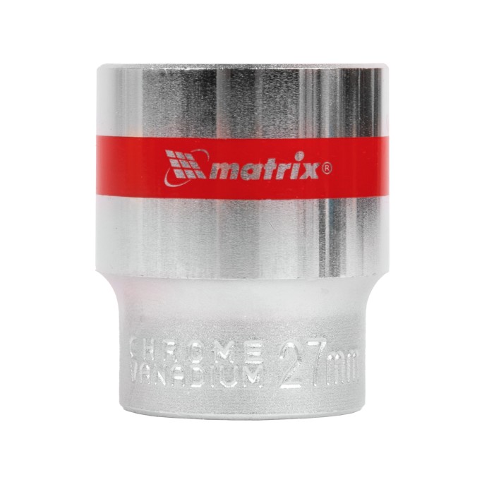 Головка торцевая, 27 мм, двенадцатигранная, CrV, под квадрат 1/2, хромированная Matrix