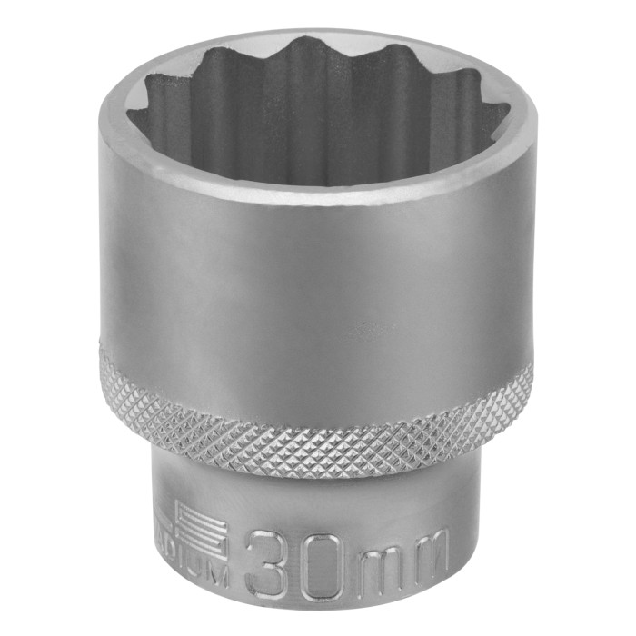 Головка торцевая, 30 мм, двенадцатигранная, CrV, под квадрат 1/2, хромированная Stels