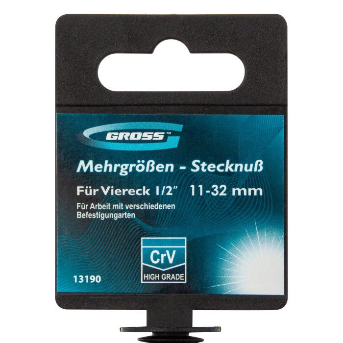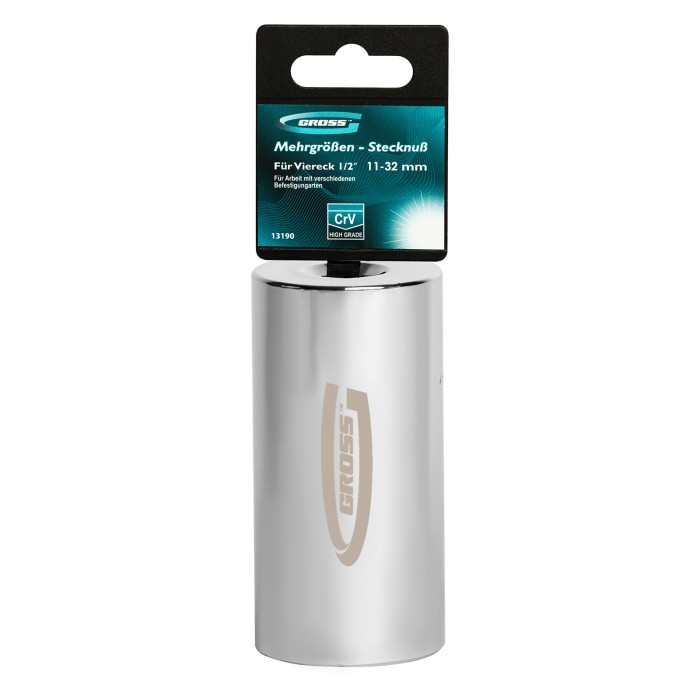 Головка торцевая многоразмерная 11-32 мм, под квадрат 1/2, CrV, хромированная Gross