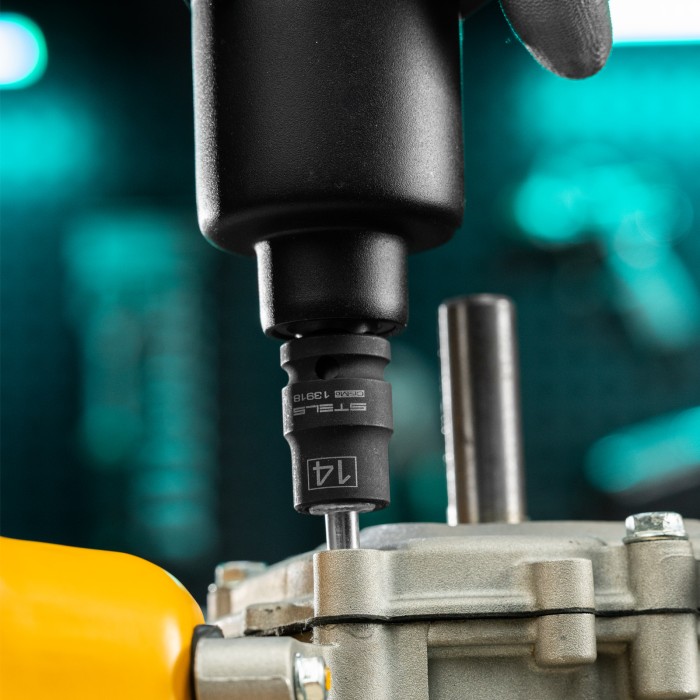 Ударная шестигранная головка Stels 13918 размером 14 мм, из стали CrMo, с присоединительным квадратом 1/2 дюйма, — сменная насадка для электрических и пневматических гайковертов. Она пригодится для монтажа и демонтажа кр...
