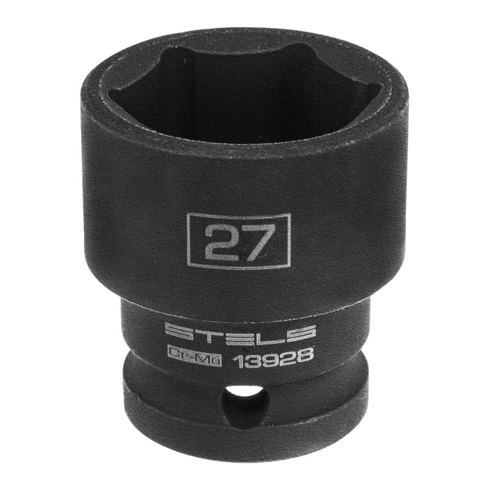 Ударная шестигранная головка Stels 13928 размером 27 мм, из стали CrMo, с присоединительным квадратом 1/2 дюйма, — сменная насадка для электрических и пневматических гайковертов. Она пригодится для монтажа и демонтажа кр...