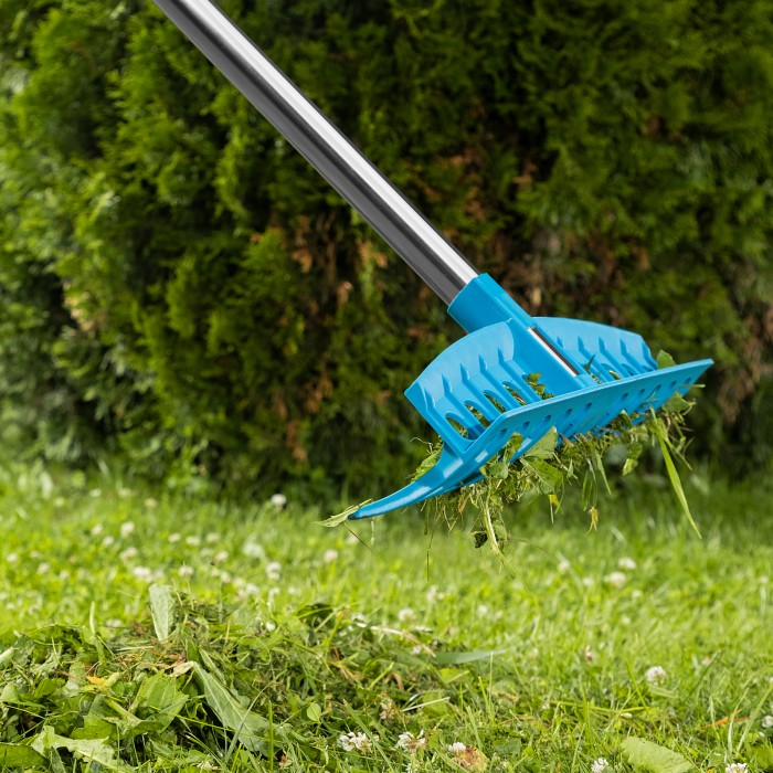 Усиленные пластиковые грабли Palisad LUXE 61732 с 12 прямыми зубьями и шириной рабочей части 400 мм, — садовый инвентарь, предназначенный для рыхления почвы, а также уборки территории. Черенок приобретается отдельно, совместимый артикул 61792.ПреимуществаДолговечность — грабли изготовлены из твердого и суперэластичного полимера, устойчивого к перепадам температур и воздействию ультрафиолета.Прочность — благодаря утолщенному профилю зубьев и ребрам жесткости грабли выдерживают большие нагрузки и не ломаются.Эффективная работа — зубья с заостренными концами легко проникают в грунт.Малый вес 260 г — граблями можно долго работать без ощущения усталости.