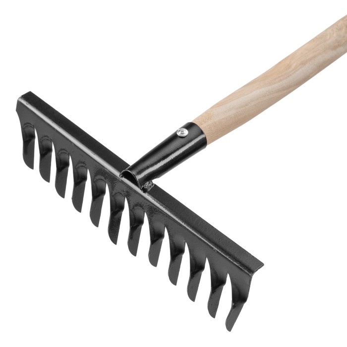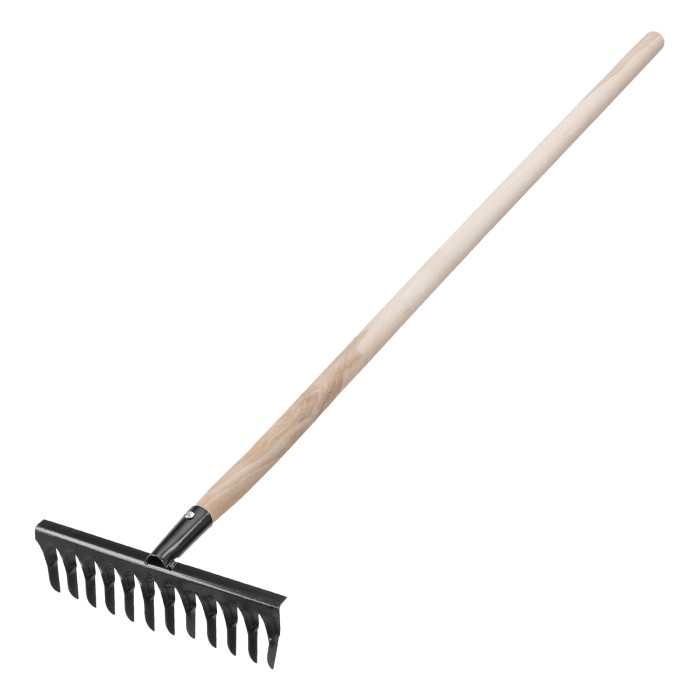 Грабли стальные, 300х1300 мм, 12 витых зубьев, деревянный черенок, Сибртех