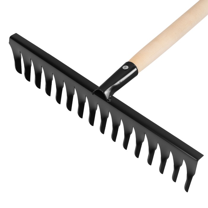 Грабли стальные, 420х1300 мм, 16 витых зубьев, деревянный черенок, Сибртех