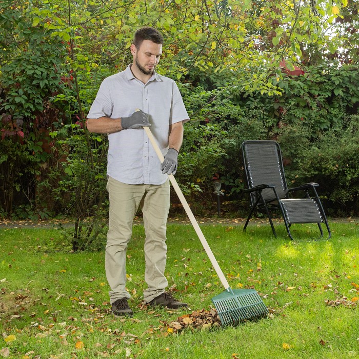 Пластиковые веерные грабли Сибртех 617055 с 22 плоскими зубьями и рабочей частью шириной 420 мм, без черенка, предназначены для сбора мелкого мусора, опавшей листвы и скошенной травы с грядок и газонов. Устанавливаются на черенок диаметром 25 мм (приобретается отдельно). Грабли пригодятся владельцам дачных участков и сотрудникам коммунальных служб.ПреимуществаДолговечность — грабли изготовлены из эластичного полипропилена, устойчивого к воздействию ультрафиолета.Надежность — упругое основание с ребрами жесткости устойчиво к изгибающим нагрузкам.Малый вес 200 г — длительная работа не вызывает ощущение усталости.