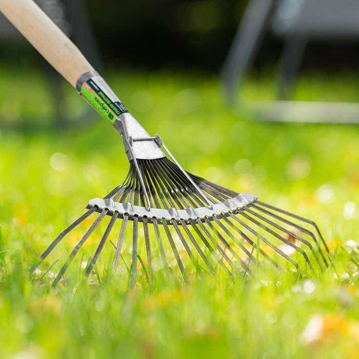 Веерные стальные грабли Сибртех 61778 с 20 плоскими зубьями, шириной 385 мм, оксидированные, без черенка, предназначены для работы на садовом участке. С их помощью удобно убирать мусор, листву и ветки с лужаек и грядок. ...