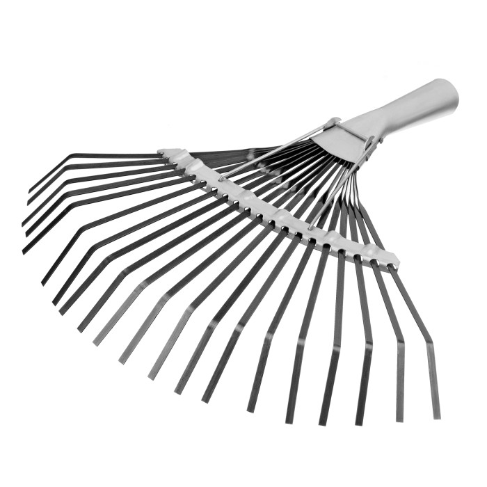 Грабли веерные стальные, 385 мм, 20 плоских зубьев, оксидированные, без черенка, Сибртех