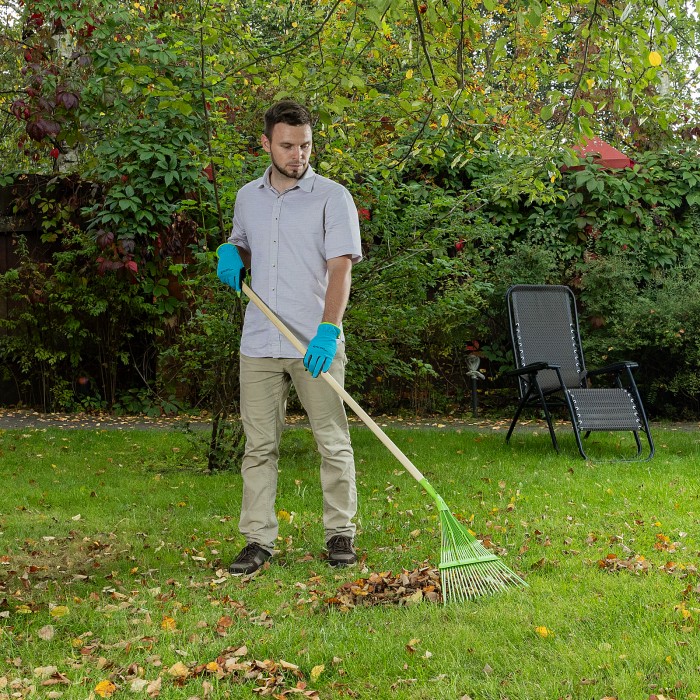 Веерные стальные грабли Palisad 617015 шириной 565 мм, эмалированные, усиленные, с 22 плоскими зубьями, без черенка, предназначены для очистки от мусора газонов, придомовых территорий и грядок. Прямая рабочая кромка повы...