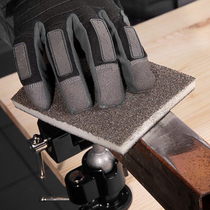 Мягкая губка для шлифования Matrix 75715 размером 125 х 100 х 10 мм входит в набор из трех абразивных губок зернистостью P 60/80, P 60/100 и P 80/120, предназначенных для ручной обработки древесины, пластика, металла, шпаклеванной поверхности. Губки имеют различную зернистость с двух сторон, это позволяет использовать их для чернового и чистового шлифования. Они помогают удалять старые лакокрасочные покрытия, ржавчину, сглаживать неровности. Комплект будет полезен для проведения ремонта помещений, автомобилей, мебели, а также для выполнения домашних работ.ПреимуществаГибкость — основание из мягкого поролона и толщина 10 мм позволяют обрабатывать труднодоступные места и поверхности со сложным рельефом.Эффективная работа — в качестве абразива использованы твердые износостойкие зерна оксида алюминия заостренной формы.Высокий ресурс — абразив нанесен на губки с 4 сторон, поэтому изделия рассчитаны на долгую службу.Водостойкость — губки можно применять для «мокрого» шлифования и мыть.