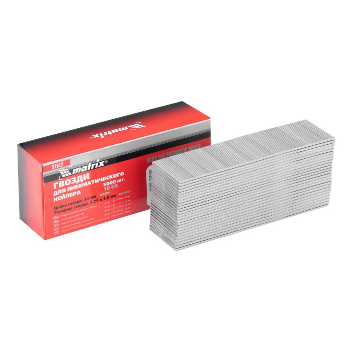 Гвозди для пневматического нейлера, длина 32 мм, ширина 1.25 мм, толщина 1 мм, 5000 шт Matrix