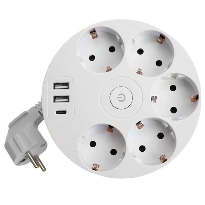HM10-51-01 Удлинитель 5-местный с/з, 3x1мм2, 2.5м, 250В, 16А, 2USB+С 5V 3,1А, серия Comfort, белый