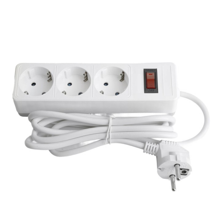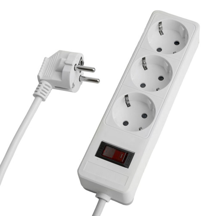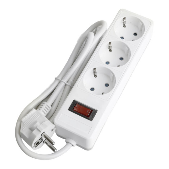 HM20-31-02 Сетевой фильтр 3-местный с/з 3x1мм2, 1,8 м, 230В, 13А, серия Optima, белый
