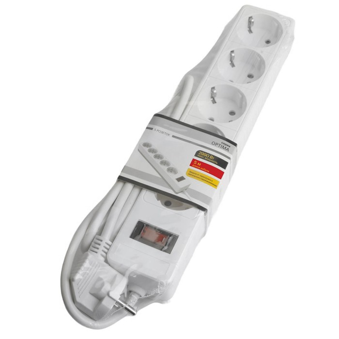 HM20-41-05 Сетевой фильтр 4-местный с/з 3x1мм2, 5 м, 230В, 13А, серия Optima, белый