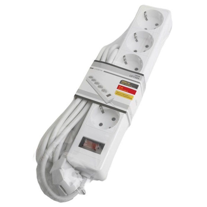 HM20-51-05 Сетевой фильтр 5-местный с/з 3x1мм2, 5 м, 230В, 13А, серия Optima, белый