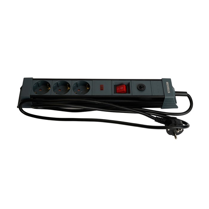 HM22-31-02 Сетевой фильтр 3-местный с/з 3x1мм2, 1,8 м, 250В, 16А, серия Techno, черный