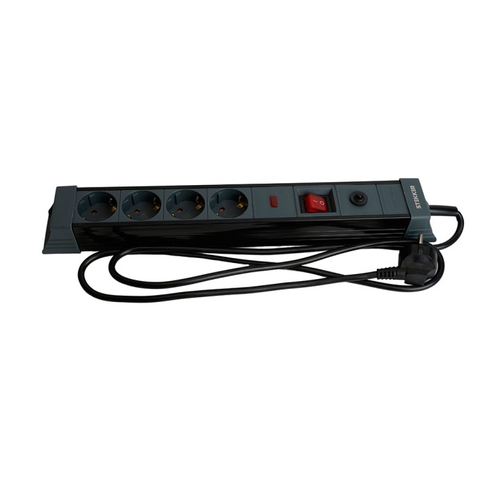 HM22-41-02 Сетевой фильтр 4-местный с/з 3x1мм2, 1,8 м, 250В, 16А, серия Techno, черный