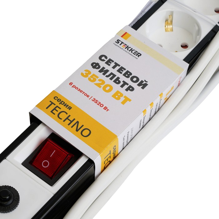 HM22-61-05 Сетевой фильтр 6-местный с/з 3x1мм2, 5 м, 250В, 16А, серия Techno, белый