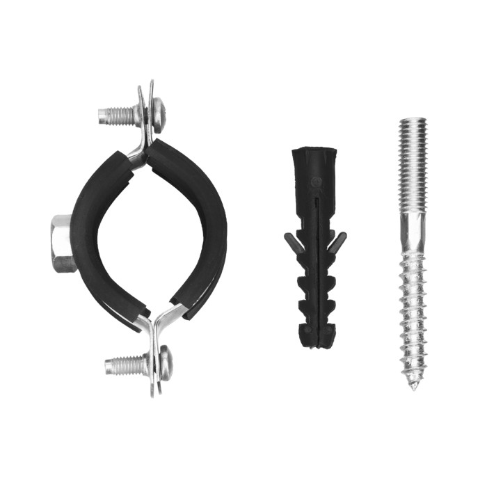 Хомут сантехнический для труб 32-36 (1") с резиновым уплотнением, шпилькой и дюбелем, 1 шт, Сибртех