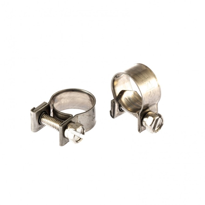 Винтовые металлические хомуты Сибртех MINI 475043 из нержавеющей стали (W4), шириной 9 мм, 2 шт. в упаковке, имеют диаметр охвата 12-14 мм и предназначены для обжима шлангов и патрубков. Затягиваются винтами, что обеспеч...