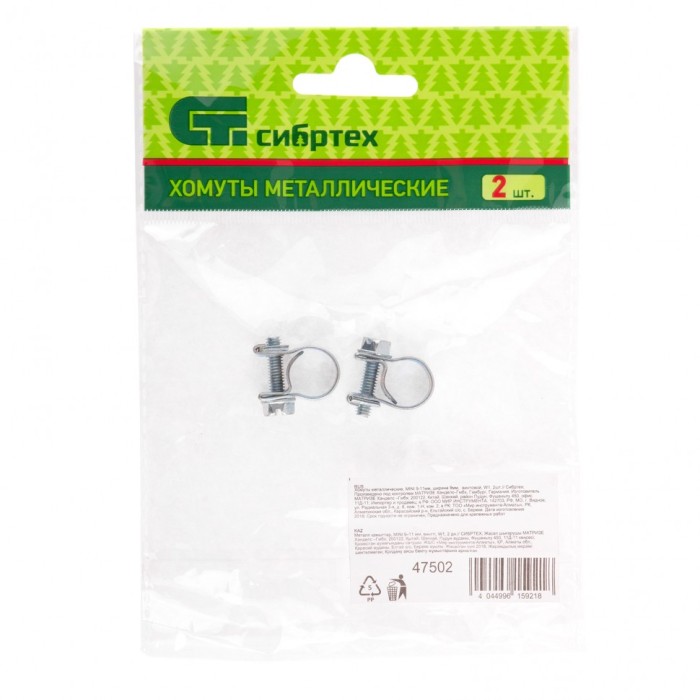Винтовые металлические хомуты Сибртех MINI 47502 шириной 9 мм, из оцинкованной стали (W1), 2 шт. в упаковке, предназначены для стяжки и закрепления шлангов и патрубков диаметром 9-11 мм. Фиксируются при помощи винтов, чт...
