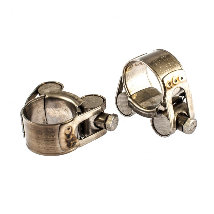 Силовые металлические хомуты Сибртех 475083, W4, шарнирные, диаметр охвата 23-25 мм, ширина 18 мм, 2 шт. в упаковке, — крепежные элементы, использующиеся для соединения труб и жестких шлангов. Каждый хомут имеет усиленны...