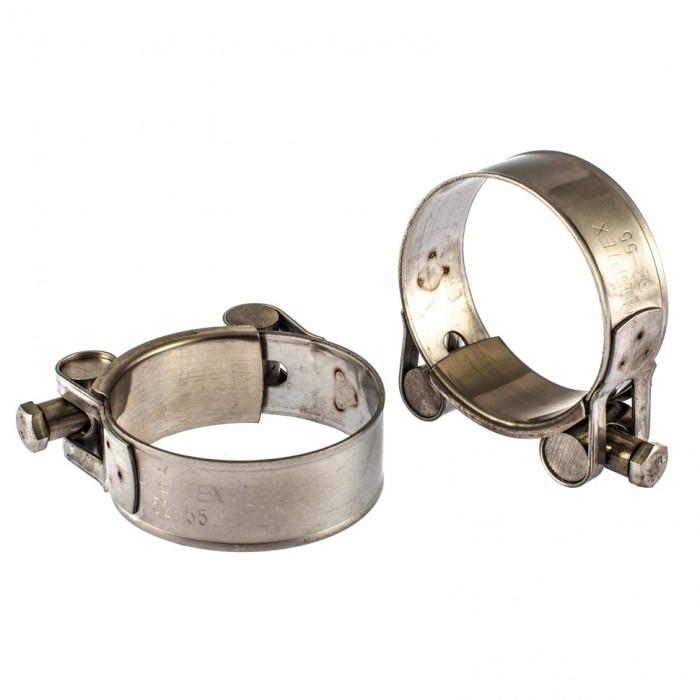 Силовые металлические хомуты Сибртех 475413, W4, шарнирные, диаметр охвата 52-55 мм, ширина 22 мм, 2 шт. в упаковке, — крепежные элементы, использующиеся для соединения труб и жестких шлангов. Каждый хомут имеет усиленны...