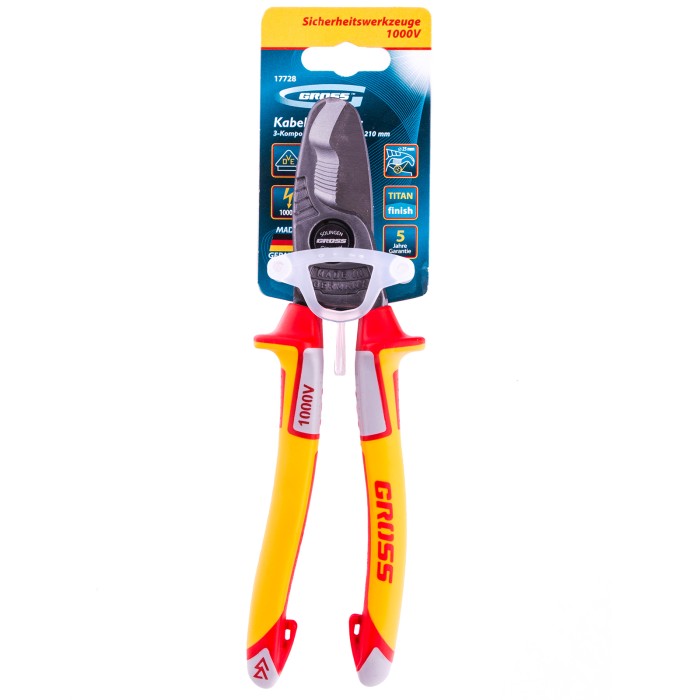Кабелерез, диэлектрические рукоятки до 1000 В, трехкомпонентные рукоятки, 210 мм Gross
