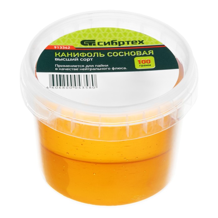 Канифоль высшего качества Сибртех 913342 в банке объемом 100 г, изготовленная в соответствии с ГОСТ 19113-84, — нейтральный флюс на основе сосновой смолы. Используется для пайки проводов и радиодеталей, а также лужения жала паяльника. Удаляет с металлических поверхностей оксидные пленки и повышает надежность паяного соединения. Пригодится радиолюбителям, а также будет полезна в быту.ПреимуществаУдобная работа в труднодоступных местах — флюс имеет жидкую консистенцию.Экономичность — банки объемом 100 г хватит надолго.Подтвержденное качество — характеристики паяльного флюса соответствуют ГОСТ 19113-84.