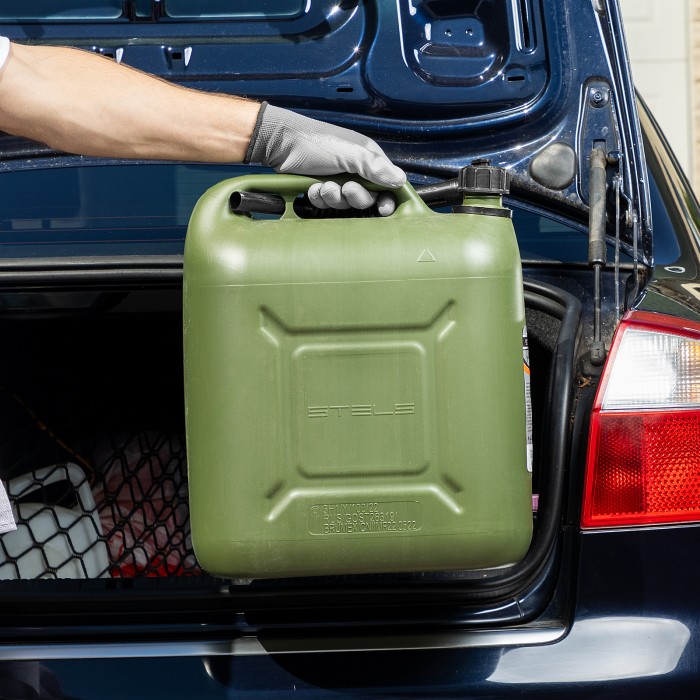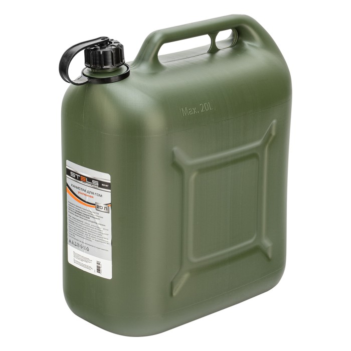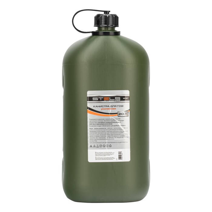 Усиленная пластиковая канистра Stels 53127 объемом 20 л, вертикальная, используется для транспортировки топлива и других ГСМ, а также их хранения в гараже или на даче. Будет полезна для дозаправки автомобиля в дороге. Также пригодится для обслуживания бензотехники: пил, триммеров, газонокосилок и другого оборудования.ПреимуществаДолгий срок службы — канистра усиленной конструкции изготовлена из маслобензостойкого пластика увеличенной толщины.Комфортное использование — специальный носик позволяет переливать бензин без риска испачкаться.Компактность — канистру удобно перевозить в багажнике легкового автомобиля.