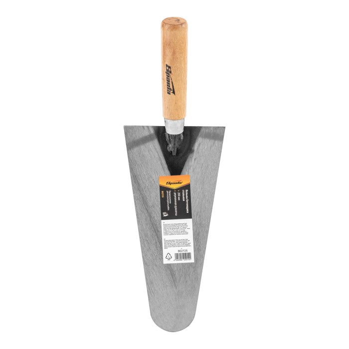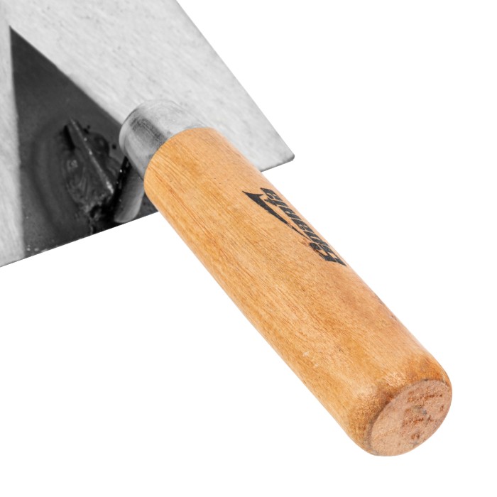Стальная кельма бетонщика Sparta 862725 с полотном длиной 200 мм и деревянной ручкой применяется в ходе строительных и отделочных работ. Полотно треугольной формы с закругленными краями оптимально для перемешивания, накидывания и равномерного распределения растворов различной плотности, заполнения вертикальных швов и удаления излишков состава. Кельма удобна для работы в труднодоступных местах.ПреимуществаПрочность — рабочая часть выполнена из качественной инструментальной стали.Быстрое и качественное удаление излишков раствора — полотно имеет прямые грани.Устойчивость к высоким нагрузкам — ручка прикреплена к полотну методом сварки.Долговечность — деревянная ручка отшлифована и покрыта лаком, что обеспечивает ей стойкость к рассыханию и воздействию влаги.Малый вес 163 г — инструментом можно долго работать без ощущения усталости.