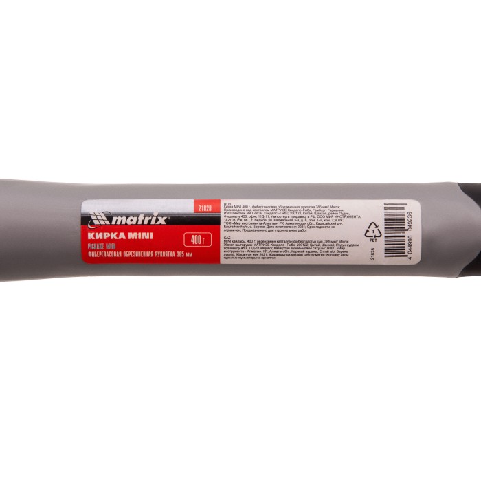 Кирка Matrix MINI 21828 с головой весом 400 г и фибергласовой обрезиненной рукояткой длиной 385 мм применяется для мелких садовых работ, например, для разбивания грунта. Обрезиненная рукоятка из фибергласа хорошо амортизирует удар и не выскальзывает из руки, поэтому работа не вызывает дискомфорт. Инструмент оптимально подходит для работы одной рукой.ПреимуществаВысокая прочность — рабочая часть изготовлена из стали 50 по технологии свободной ковки и закалена до твердости 48-52 HRC, поэтому устойчива к ударным нагрузкам.Коррозионная стойкость — на голову кирки нанесена защитная краска.Комфортная работа — обрезиненная рукоятка из фибергласа амортизирует удар, надежно лежит в руке и не выскальзывает из ладони.Малый вес 754 г — киркой можно долго работать без ощущения усталости.