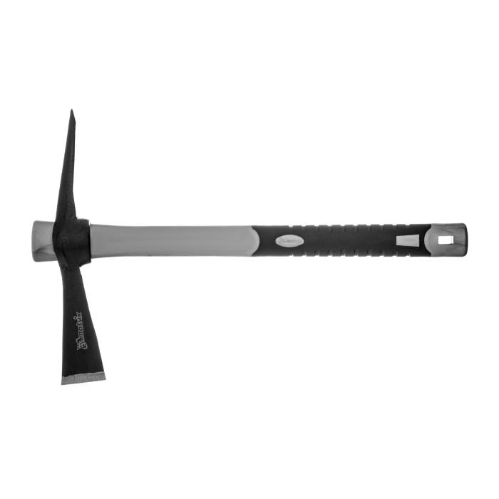 Двухплоскостная кирка Matrix MINI 21826 с головой весом 500 г и фибергласовой обрезиненной рукояткой длиной 385 мм применяется для мелких садовых работ. Одна сторона заточена под лопатку и предназначена для разбивания грунта, вторая — под топор, используется для перерубания корней. Инструмент оптимально подходит для работы одной рукой.ПреимуществаВысокая прочность — рабочая часть изготовлена из стали 50 по технологии свободной ковки и закалена до твердости 48-52 HRC, поэтому устойчива к ударным нагрузкам.Коррозионная стойкость — на голову кирки нанесена защитная краска.Комфортная работа — обрезиненная рукоятка из фибергласа амортизирует удар, надежно лежит в руке и не выскальзывает из ладони.