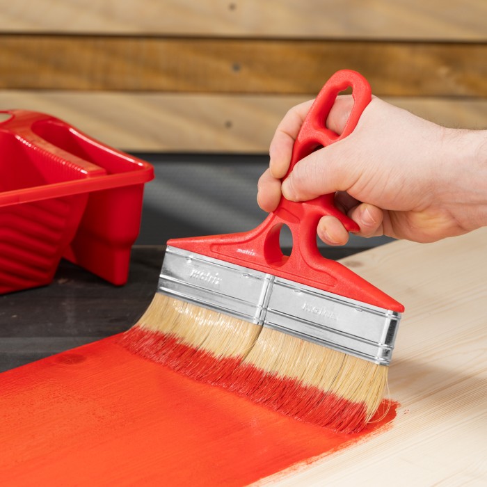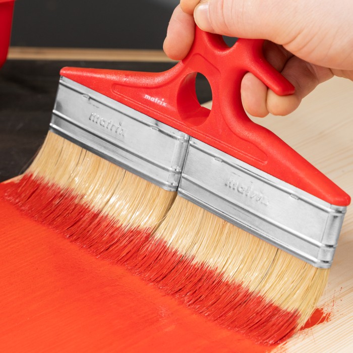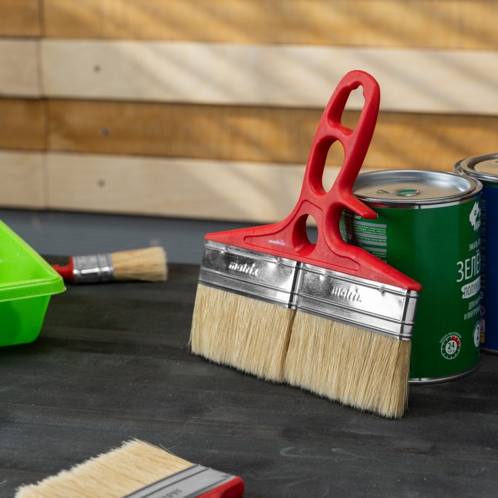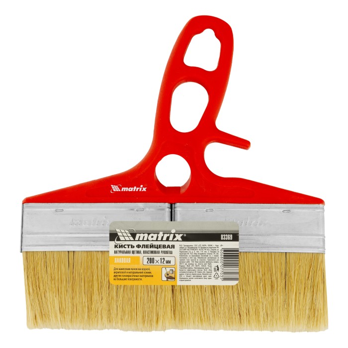 Флейцевая кисть для лаков Color Line Matrix 83369 шириной 200 мм и толщиной 12 мм, с натуральной щетиной и пластиковой ручкой, используется при отделке поверхностей лаковыми составами. Увеличенные размеры быстро обрабаты...