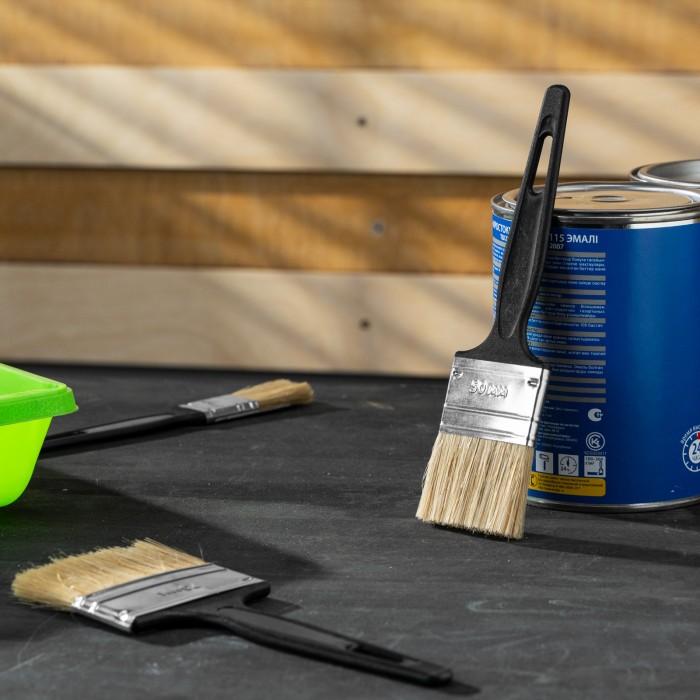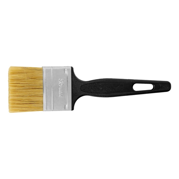 Флейцевая кисть Сибртех «Стандарт» 82504 размером 50 х 6 мм, с натуральной щетиной и пластиковой ручкой, оптимальна для финишной обработки поверхностей и устранения мелких дефектов после использования кистей с более жест...