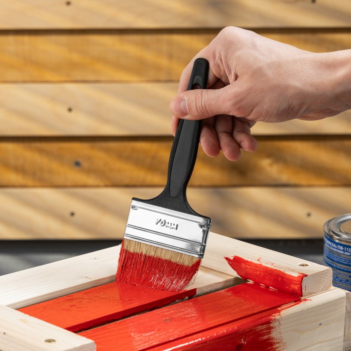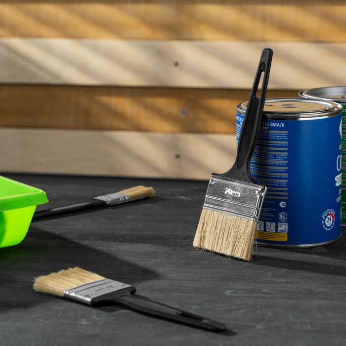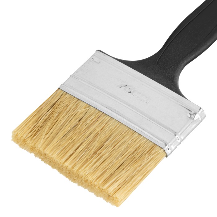 Флейцевая кисть Сибртех «Стандарт» 82506 размером 70 х 6 мм, с натуральной щетиной и пластиковой ручкой, оптимальна для финишной обработки поверхностей и устранения мелких дефектов после использования кистей с более жест...
