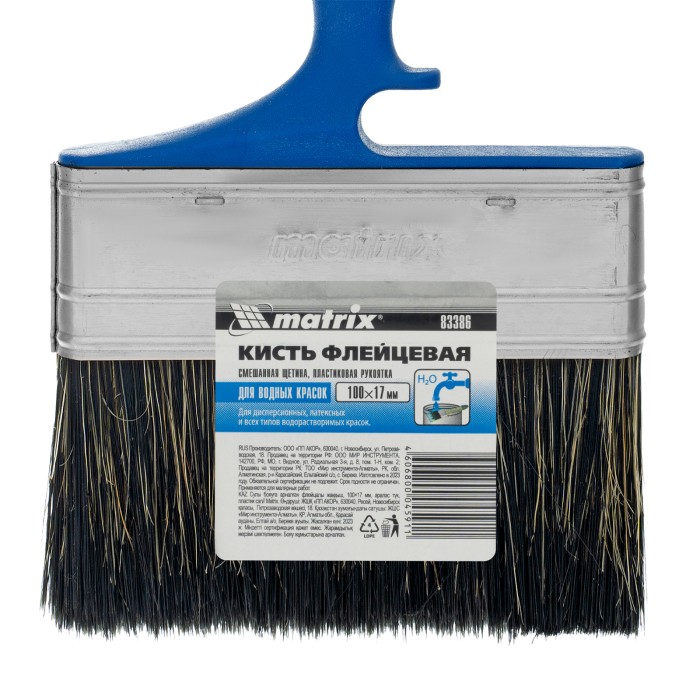 Флейцевая кисть Matrix Color Line «ВОДНЫЕ КРАСКИ» 83386 шириной 100 мм и толщиной 17 мм разработана специально для использования с составами на водной основе, в том числе деревообрабатывающими. Комбинированная щетина опт...